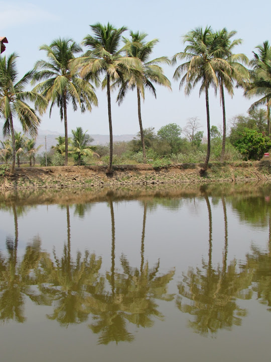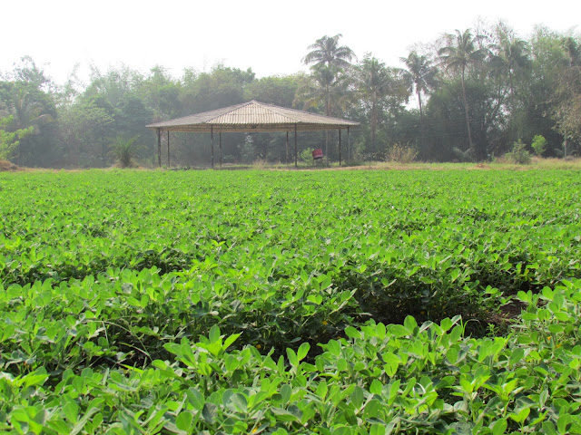मुंबई -पुणे हायवे वरुन निघालो.हायवे सोडल्यावर नेरळ कडे जाणारा एक भयाण रस्ता लागला. आणि आम्हाला आपण रस्ता चुकलो की काय असे वाटू लागले. आयती संधी चालून आलीच आहे म्हणून बाबांच्या भलतीकडेच घेऊन जाण्याच्या आणि पत्ता न विचारण्याच्या सवयीवर आईने तोंडसुख घेणं चालू केलं. जेव्हा अबीर ने गळा काढला तेव्हा मग खरी चलबिचल सुरु झाली. एव्हाना सगुणा बागेच्या पाट्या दिसायला लागल्या होत्या. नेरळ गावच्या अरुंद रस्त्यातून गाडी एकदाची सगुणा बागेत पोहोचली.तोवर माझा जीव कधी एकदा ह्या कार्ट्याला बाहेर मोकळ्या हवेत नेते ह्या विचाराने कासावीस झाला होता. दाराशीच एका मुलीने आम्हाला नाव विचारून १ नंबर च्या Dormetory कडे पाठवले.. आणि तिथवर जाई पर्यंतच "आपण योग्य ठिकाणी आलो आहोत" असं माझं मत झालं..भरपूर झाडं..२-४ तळी..पाँड हाऊस..आमराई ..झुले.. ७ फुट उंच घोडे..खिल्लरी बैलांची जोडी.. शेणाने सारवलेली जमीन..शेतं पाहून गारगार वाटायला लागलं..सगळं कसं एकदम "बांबूचे घर..बांबूचे दार..बांबूची जमीन पिवळीशार..हाऊस ऑफ बॅम्बु sss ..." होतं..