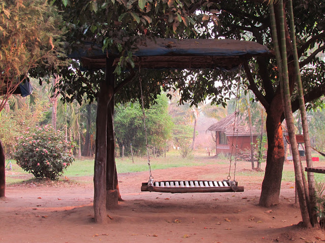डॉर्मेटरी मस्त होती.आधी मला वाटलं कि डॉर्मेटरी म्हणजे लोक बाथरूम बाहेर लाईन लावून उभे आहेत असं दिसणार.पण तसं काही नव्हतं.सगळी सोय असलेला छोटासा हॉल होता तो.शिवाय माळवद होते..समोर अंगण होते..शेतं दिसत होती.. झाडांना झुले होते..