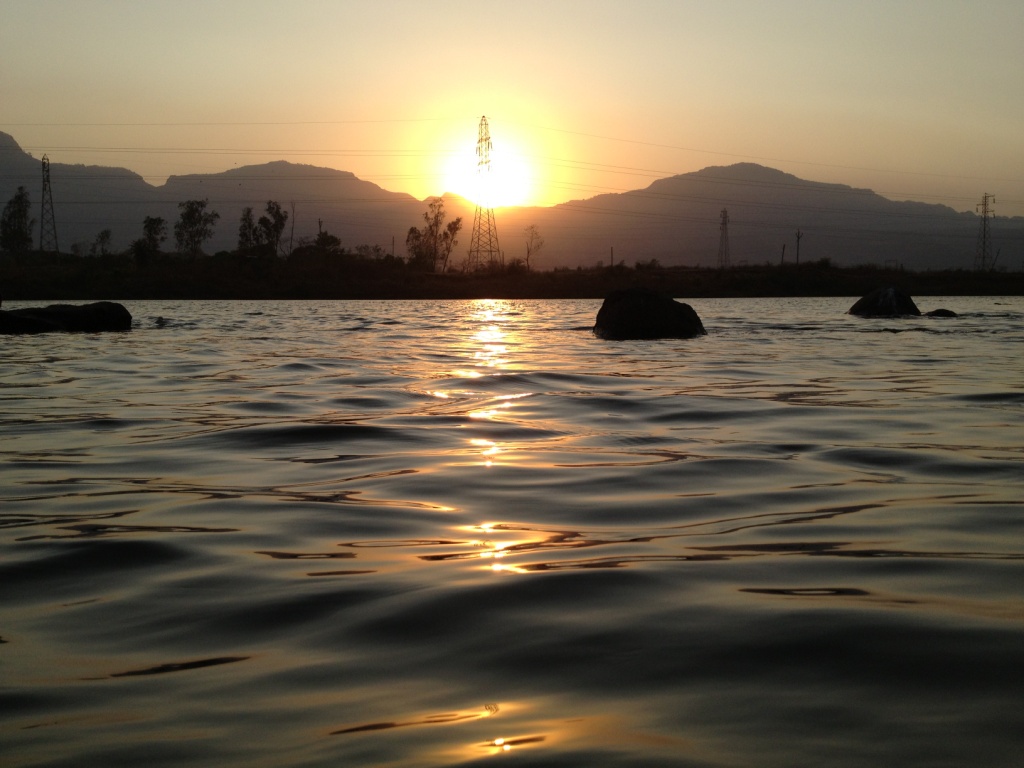 सूर्यास्त झाल्यावर दमून भागून आम्ही परत आलो.कोरडे होऊन मस्त चहा मागवला.आणि गप्पा मारत बसलो.खरंतर जेवणाची वाट बघत बसलो..!!८ ला जेवण आलं..आणि वाट पाहिल्याचच काय तर या मनुष्य देहाला धारण केल्याच समाधान झालं.तांदुळाची भाकरी, पिठलं,मसुराची डाळ,ठेचा,कैरीचे लोणचं,पापड,कांदा,सलाड,आणि सुंदर आटवलेली खीर.गरम गरम वरण भात होताच...आडवा हात मारला..तृप्त होऊन उशिरा पर्यंत गप्पा मारत बसलो.आमचे अजून २ नग मुंबई हून आले. त्यामुळे त्यांना काय काय केलं हे सांगून तुफान जळवलं..१.३० ला झोपी गेलो ते थेट ६.३० ला उठलो.लग्गेच आवरून,चहा घेऊन ८ ला नदीवर...!!!पुन्हा प्रचंड मस्ती केली..चित्र विचित्र फोटो काढले...लोकांना एव्हाना माझा वाढदिवस आहे याचे विस्मरण झाल होतेच.. (किंवा त्यांनी त्याचा विचार कारण सोडून दिलं..)आणि परत गाडी माझ्या वर घसरून ख्या ख्या ख्या सूरु झाले..मी गपगुमान पळ काढला..